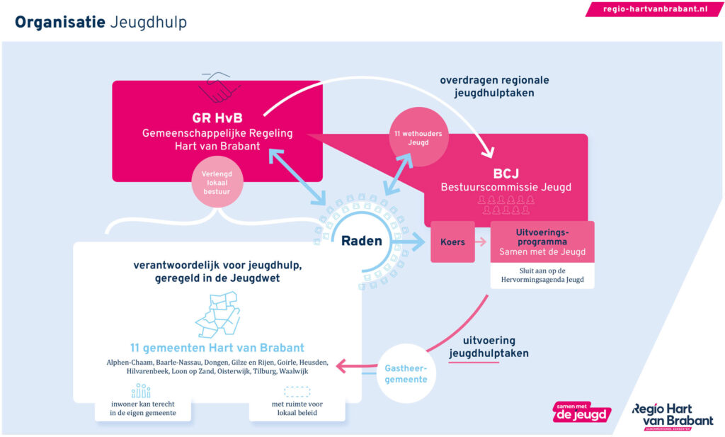 Regio Hart van Brabant is bestuurlijk verantwoordelijk voor de beschikbaarheid van goede jeugdhulp en de inrichting en het functioneren van het jeugdstelsel. Het maatschappelijk doel hierbij is dat kinderen gezond, veilig en prettig opgroeien. Vanwege het specifieke karakter van deze taken en het inhoudelijke en financiële gewicht, is in 2015 onze bestuurscommissie Jeugd (BC Jeugd) ingesteld.